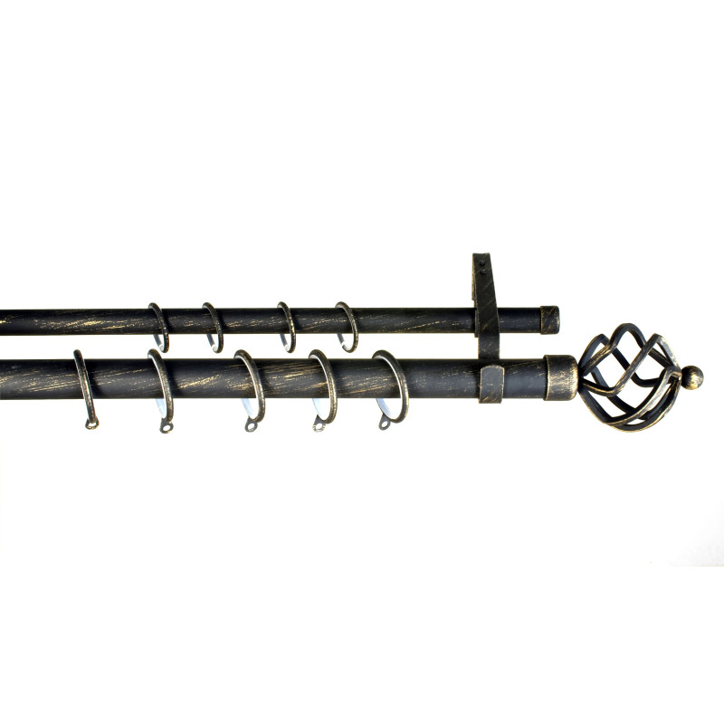 Διπλό μεταλλικό επεκτεινόμενο κουρτινόξυλο "Darling" Φ25/22mm & Φ19/16mm, 140cm-240cm Μαύρο Χρυσό, 1 σετ